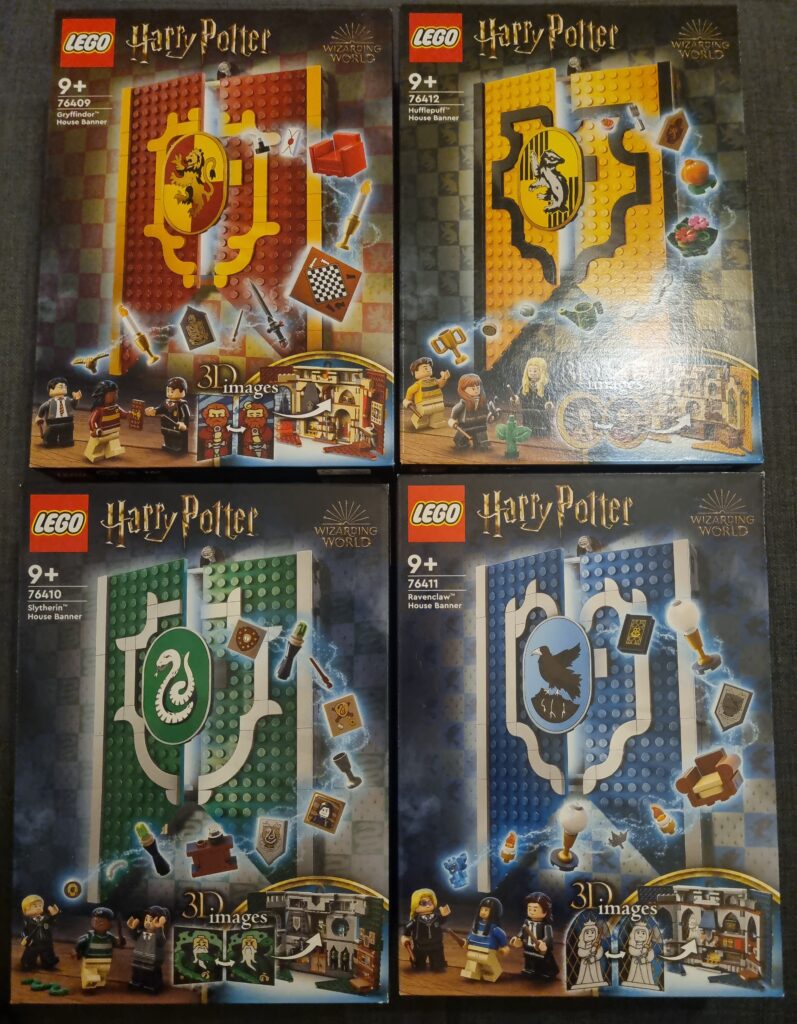 Das Wetter ist sehr herbstlich: es stürmt und regnet den ganzen Tag. Endlich wieder Zeit für LEGO 😁 – genauer gesagt die Harry Potter Hogwarts Hausbanner von Gryffindor, Hufflepuff, Slytherin und Ravenclaw.