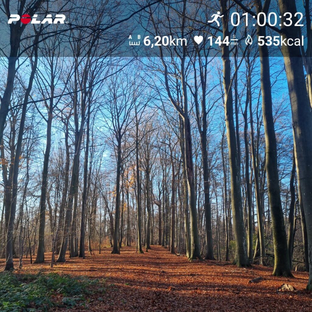 Meine letzte Laufeinheit ist schon wieder über zwei Wochen her, dafür gings heute bei Tageslicht raus in den Wald. Das tat gut!