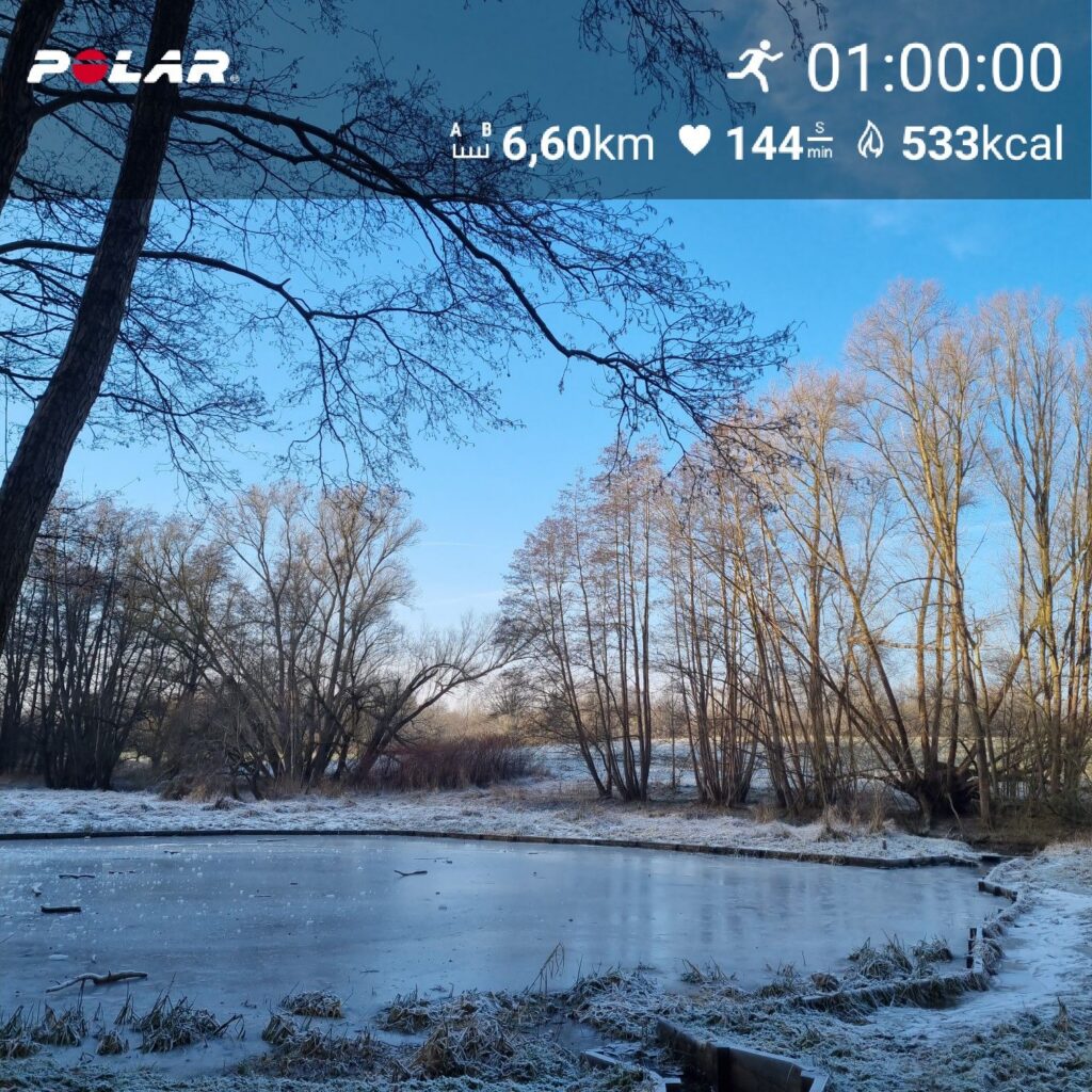 Bei frostigen 1 °C habe ich heute meinen Longrun der 1. Trainingswoche absolviert. Immerhin schien die Sonne!